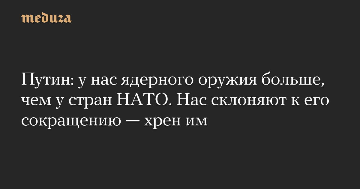 Путин: у нас ядерного оружия больше, чем у стран НАТО. Нас склоняют к его сокращению — хрен им