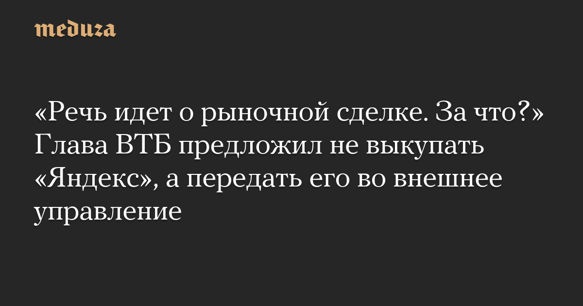 «Речь идет о рыночной сделке. За что?» Глава ВТБ предложил не выкупать «Яндекс», а передать его во внешнее управление