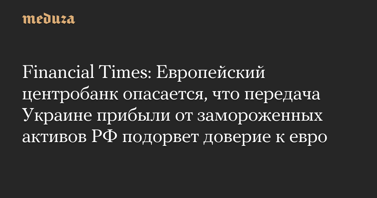 Financial Times: Европейский центробанк опасается, что передача Украине прибыли от замороженных активов РФ подорвет доверие к евро