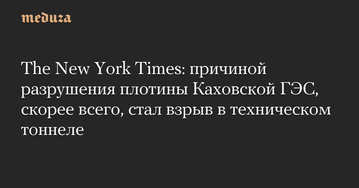 The New York Times: ​причиной разрушения плотины Каховской ГЭС, скорее всего, стал взрыв в техническом тоннеле