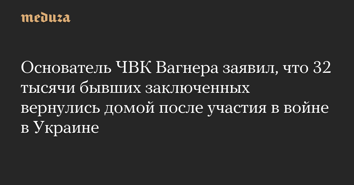 Основатель ЧВК Вагнера заявил, что 32 тысячи бывших заключенных вернулись домой после участия в войне в Украине