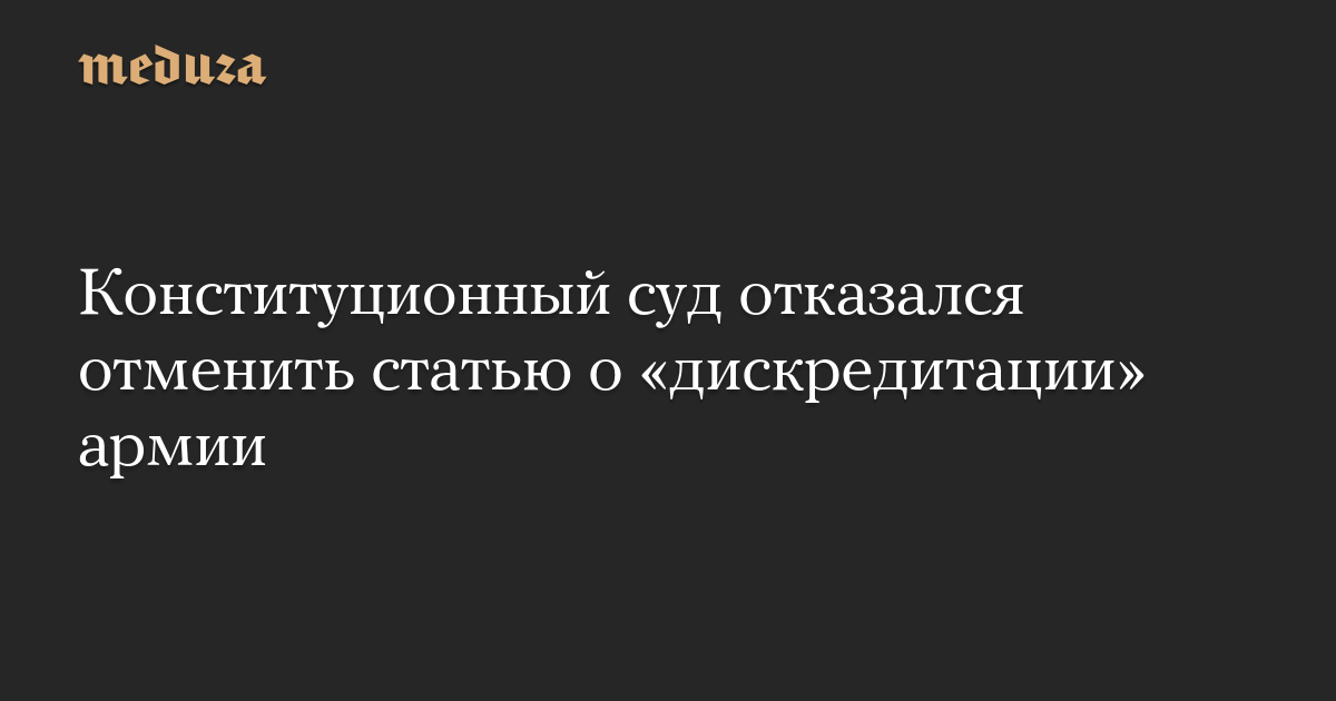 Конституционный суд отказался признать неконституционной и отменить административную статью о «дискредитации» Вооруженных сил РФ (ст. 20.3.3 КоАП).