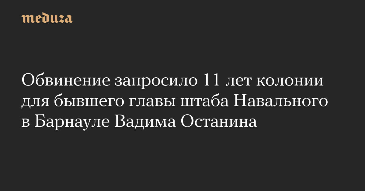 Сторона обвинения в ходе заседания в Центральном районном суде Барнаула потребовала приговорить к 11 годам колонии Вадима Останина, возглавлявшего местный штаб Алексея Навального, сообщают сторонники политика.