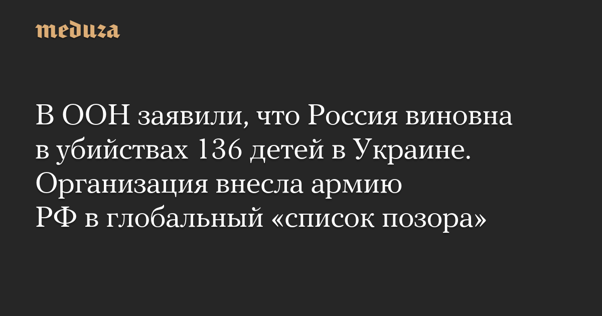 В ООН заявили, что Россия виновна в убийствах 136 детей в Украине. Организация внесла армию РФ в глобальный «список позора»