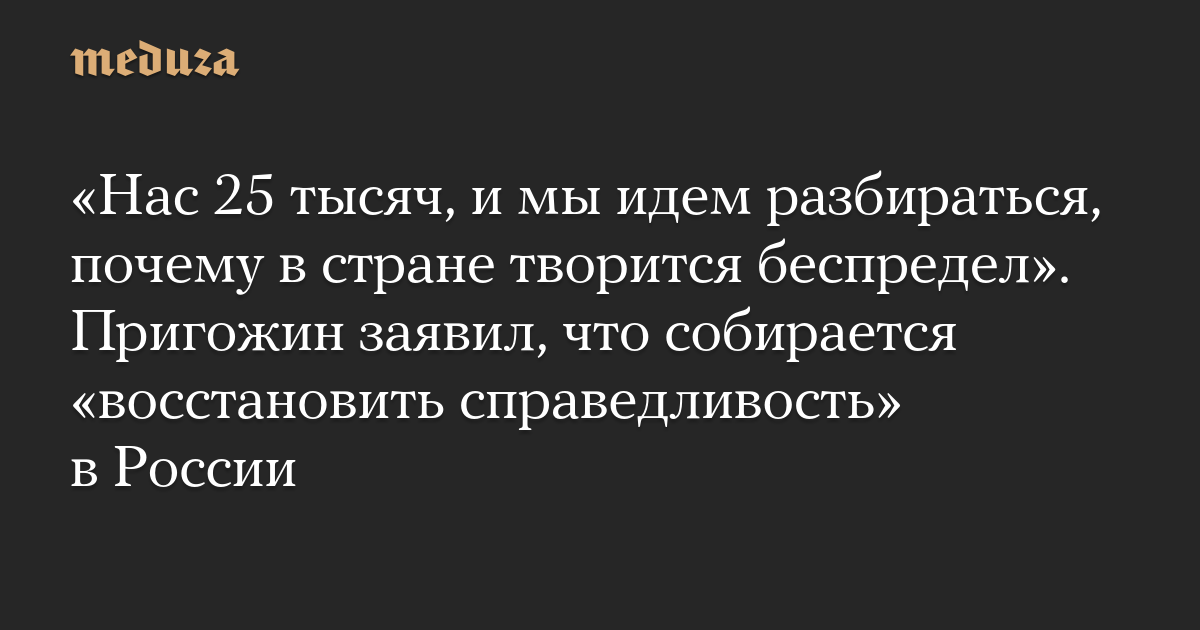 «Нас 25 тысяч, и мы идем разбираться, почему в стране творится беспредел». Пригожин заявил, что собирается «восстановить справедливость» в России