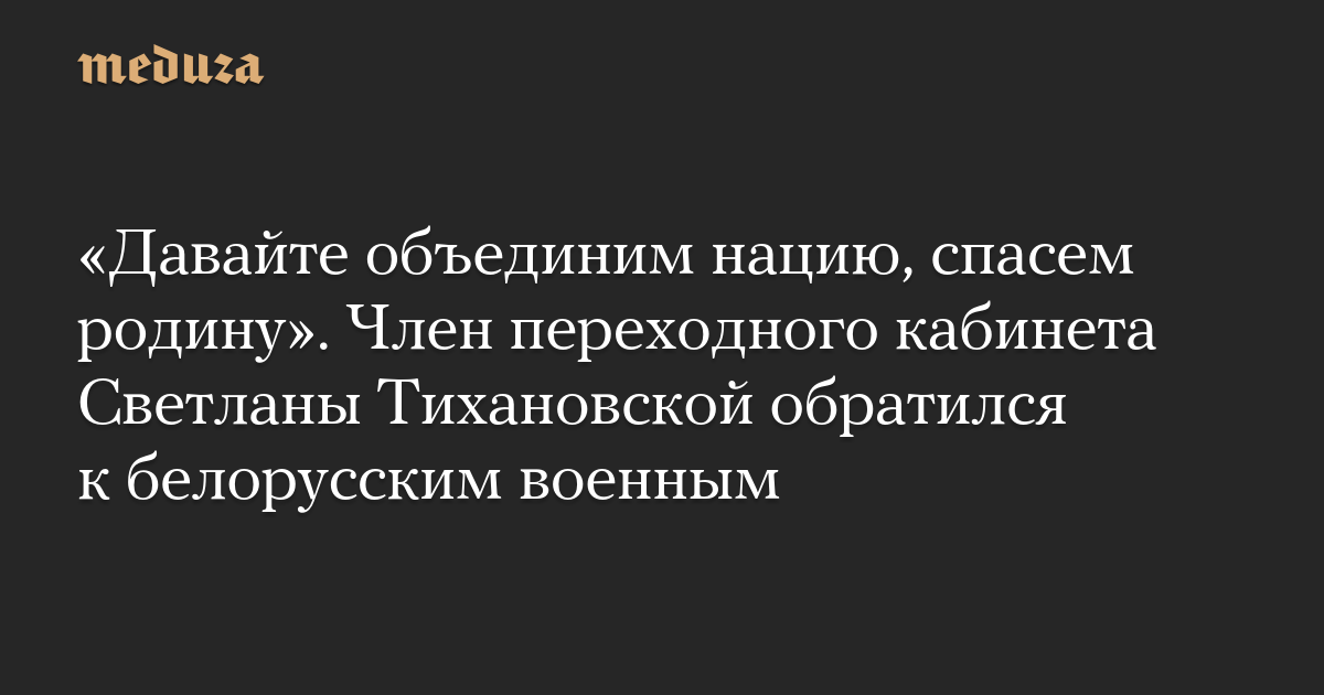 «Давайте объединим нацию, спасем родину». Член переходного кабинета Светланы Тихановской обратился к белорусским военным