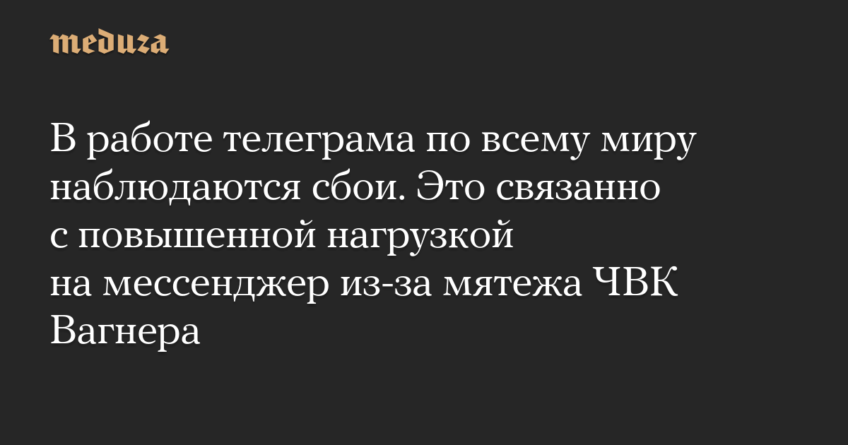 В работе телеграма по всему миру наблюдаются сбои. Это связанно с повышенной нагрузкой на мессенджер из-за мятежа ЧВК Вагнера