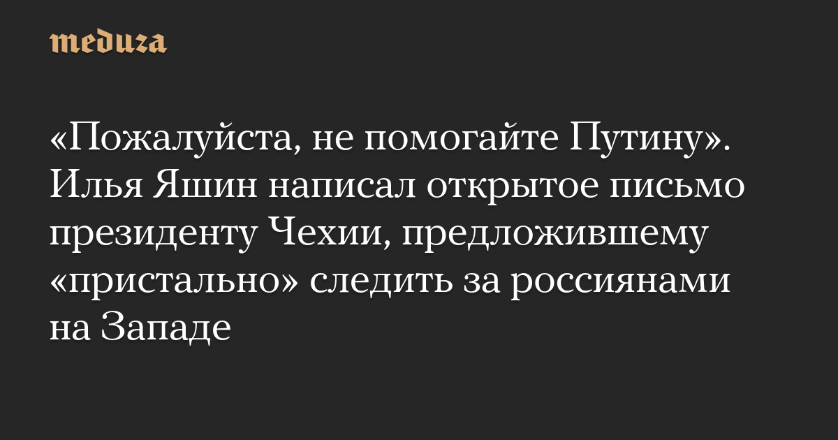 «Пожалуйста, не помогайте Путину». Илья Яшин написал открытое письмо президенту Чехии, предложившему «пристально» следить за россиянами на Западе