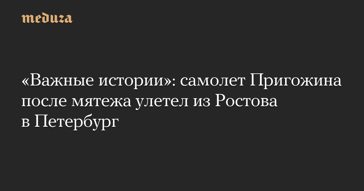 «Важные истории»: самолет Пригожина после мятежа улетел из Ростова в Петербург