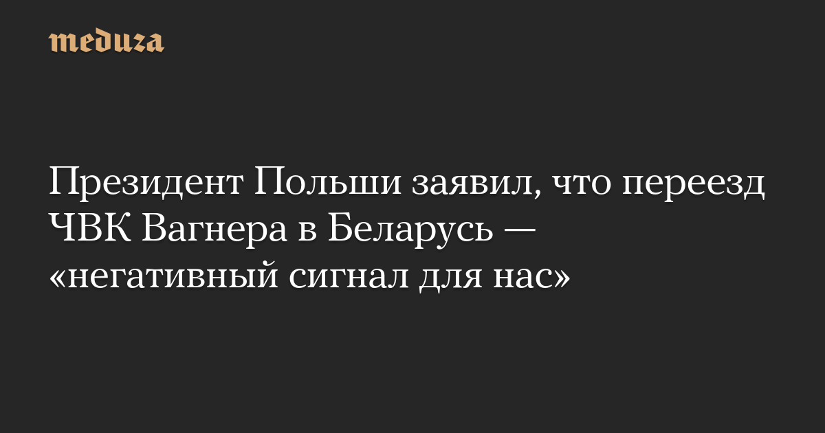Президент Польши Анджей Дуда заявил, что считает «де-факто переезд» ЧВК Вагнера в Беларусь негативным сигналом для Польши, сообщает Polsat.