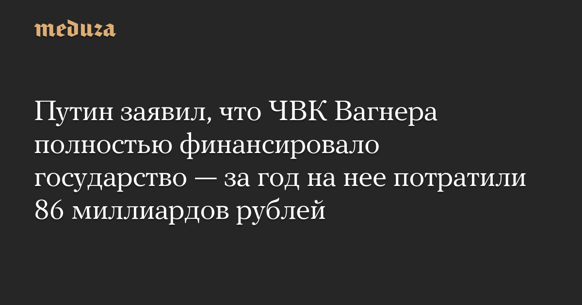 Путин заявил, что ЧВК Вагнера полностью финансировало государство — за год на нее потратили 86 миллиардов рублей
