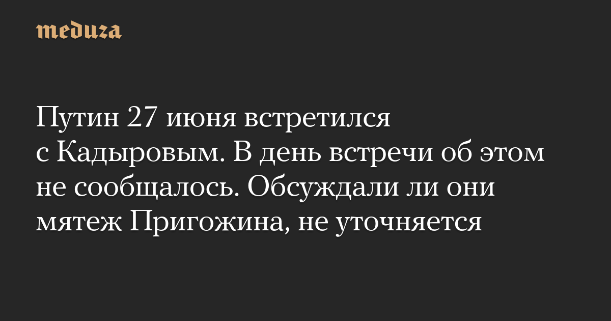 Путин 27 июня встретился с Кадыровым. В день встречи об этом не сообщалось. Обсуждали ли они мятеж Пригожина, не уточняется