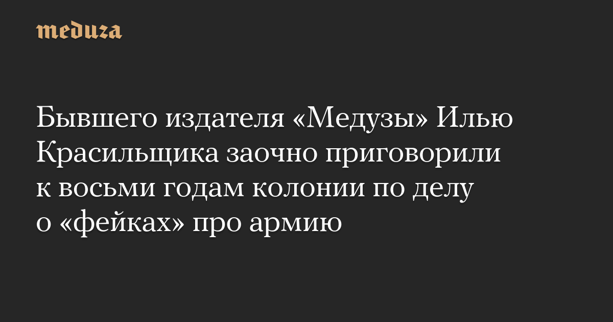 Бывшего издателя «Медузы» Илью Красильщика заочно приговорили к восьми годам колонии по делу о «фейках» про армию