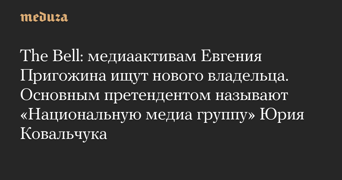 Как сообщили несколько источников издания, сотрудничающих с компаниями Пригожина, наиболее вероятным претендентом на медиаактивы считают «Национальную медиа группу» (НМГ) Юрия Ковальчука. При этом собеседники The Bell подчеркнули, что «это общая версия», о каких-либо переговорах у них данных нет.