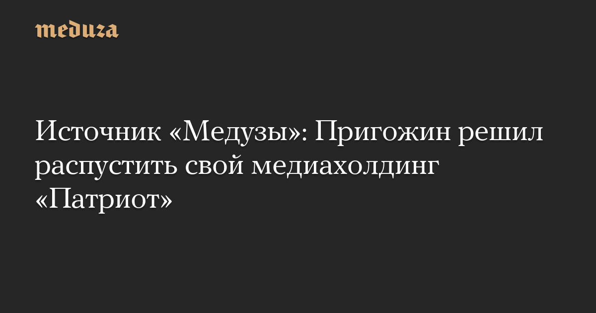 Телеграм-канал «ВЧК-ОГПУ» — тоже со ссылкой на источник — написал: «Пригожин лично объявил о ликвидации медиа-холдинга „Патриот“. Все сотрудники в стадии увольнения».