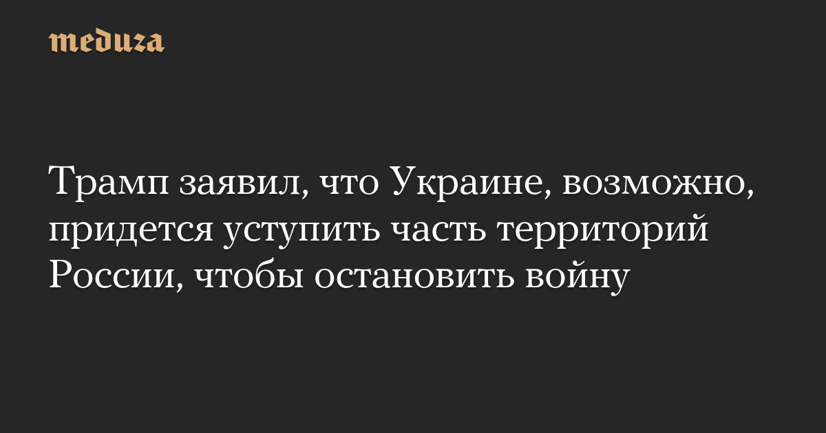 Трамп заявил, что Украине, возможно, придется уступить часть территорий России, чтобы остановить войну
