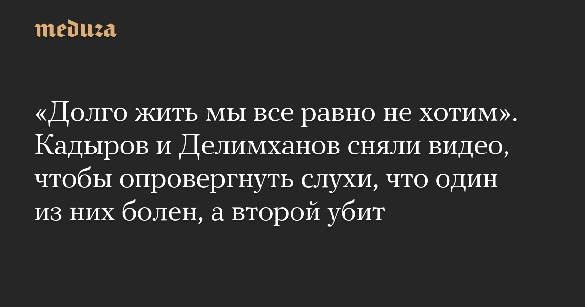 «Долго жить мы все равно не хотим». Кадыров и Делимханов сняли видео, чтобы опровергнуть слухи, что один из них болен, а второй убит