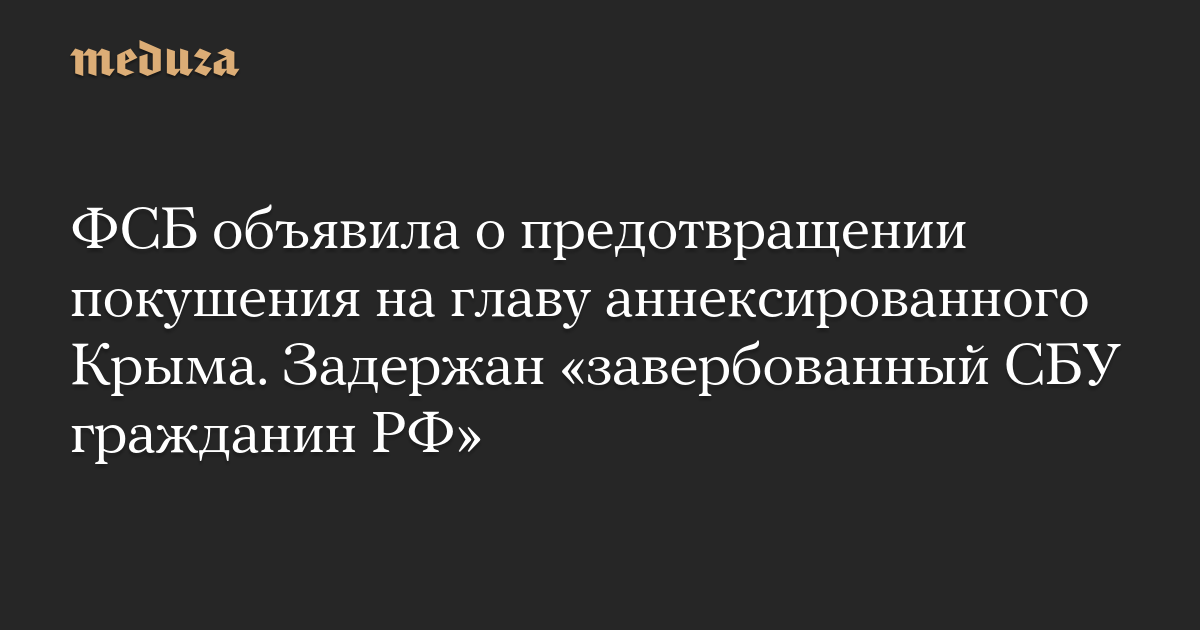 ФСБ объявила о предотвращении покушения на главу аннексированного Крыма. Задержан «завербованный СБУ гражданин РФ»
