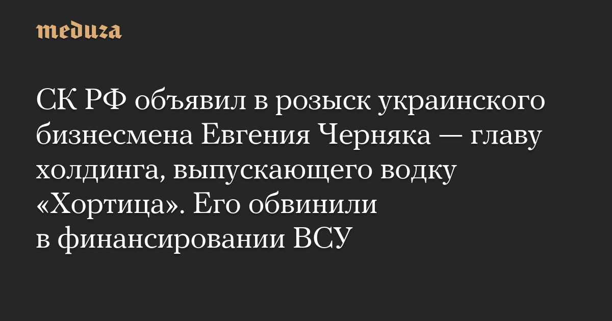 СК РФ объявил в розыск украинского бизнесмена Евгения Черняка — главу холдинга, выпускающего водку «Хортица». Его обвинили в финансировании ВСУ