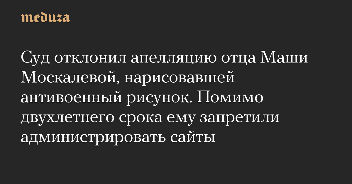Суд отклонил апелляцию отца Маши Москалевой, нарисовавшей антивоенный рисунок. Помимо двухлетнего срока ему запретили администрировать сайты