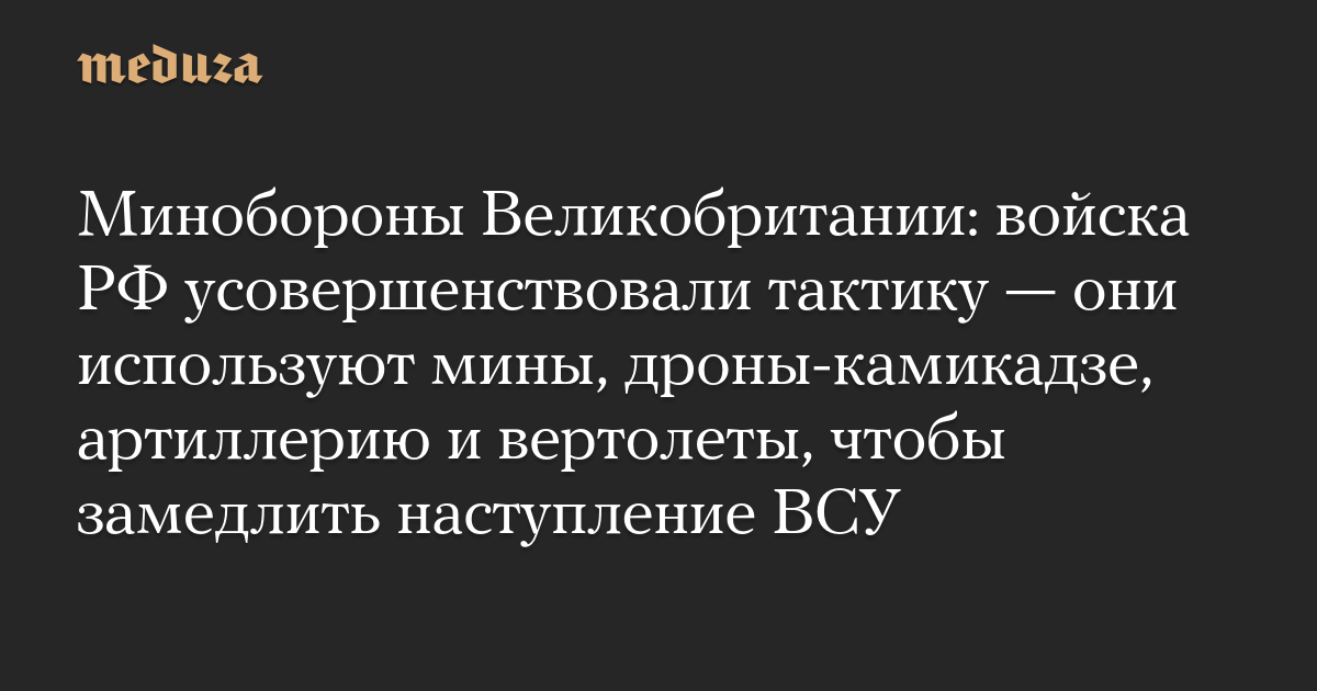 Минобороны Великобритании: войска РФ усовершенствовали тактику — они используют мины, дроны-камикадзе, артиллерию и вертолеты, чтобы замедлить наступление ВСУ