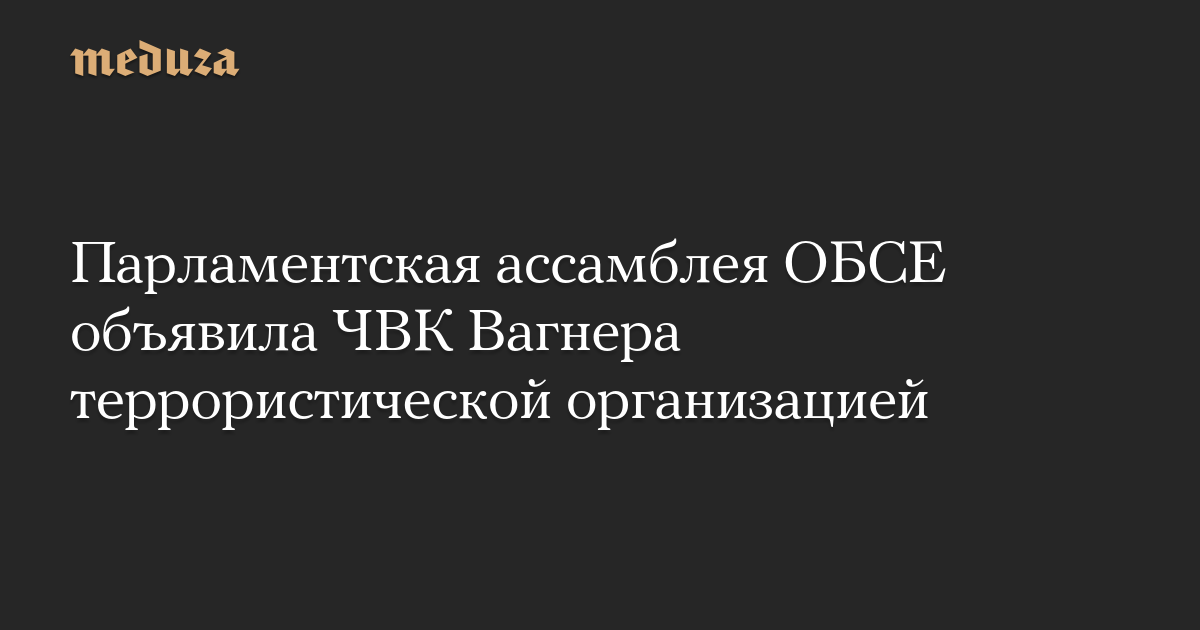 Парламентская ассамблея ОБСЕ приняла резолюцию, в которой среди прочего объявила ЧВК Вагнера террористической организацией.