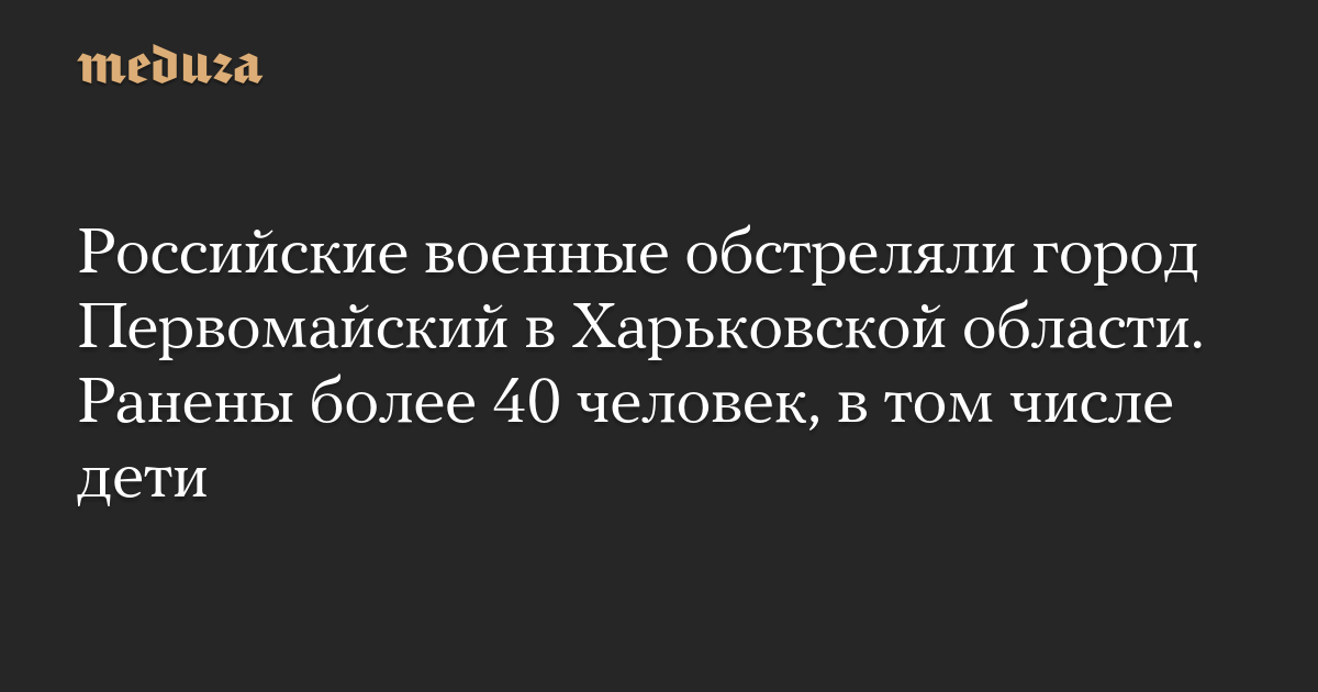 Обновление. По данным властей Украины на 18:24 мск 4 июля, при обстреле города Первомайский в Харьковской области пострадали 43 человека, в том числе 12 детей (самому младшему из них — три месяца).