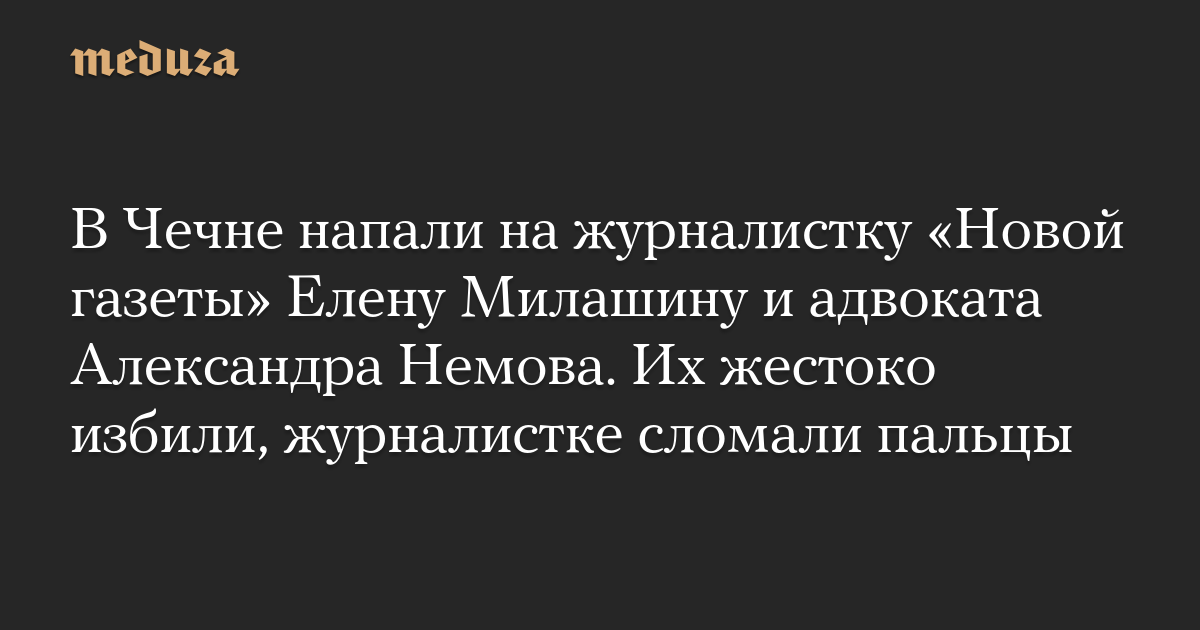 В Чечне напали на журналистку «Новой газеты» Елену Милашину и адвоката Александра Немова. Их жестоко избили, журналистке сломали пальцы