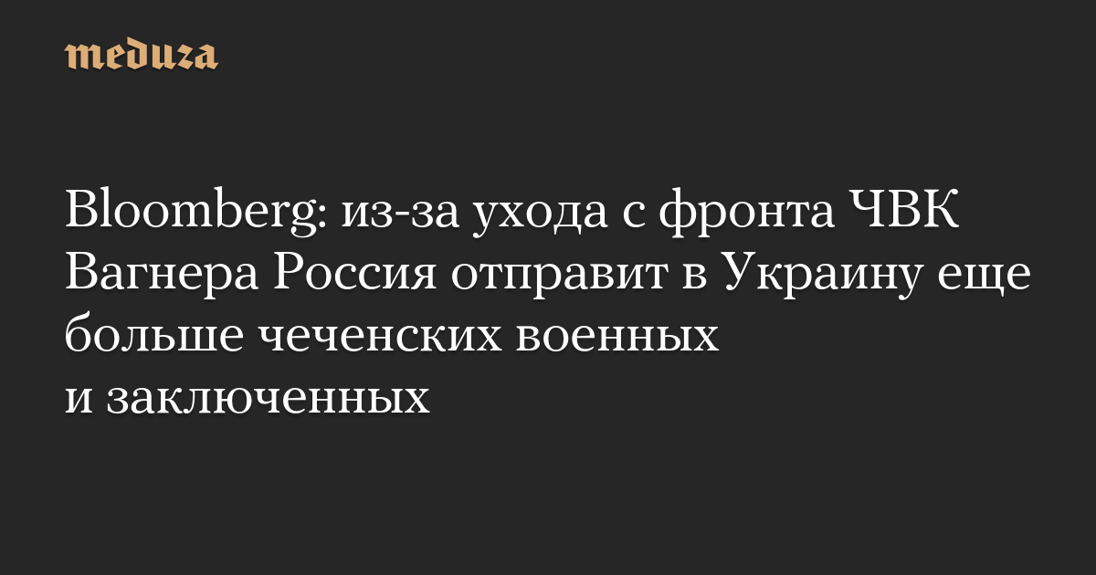 Bloomberg: из-за ухода с фронта ЧВК Вагнера Россия отправит в Украину еще больше чеченских военных и заключенных