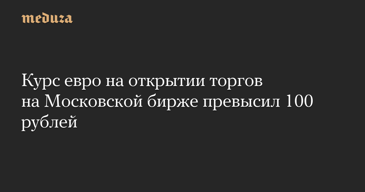 Курс евро на открытии торгов на Московской бирже превысил 100 рублей