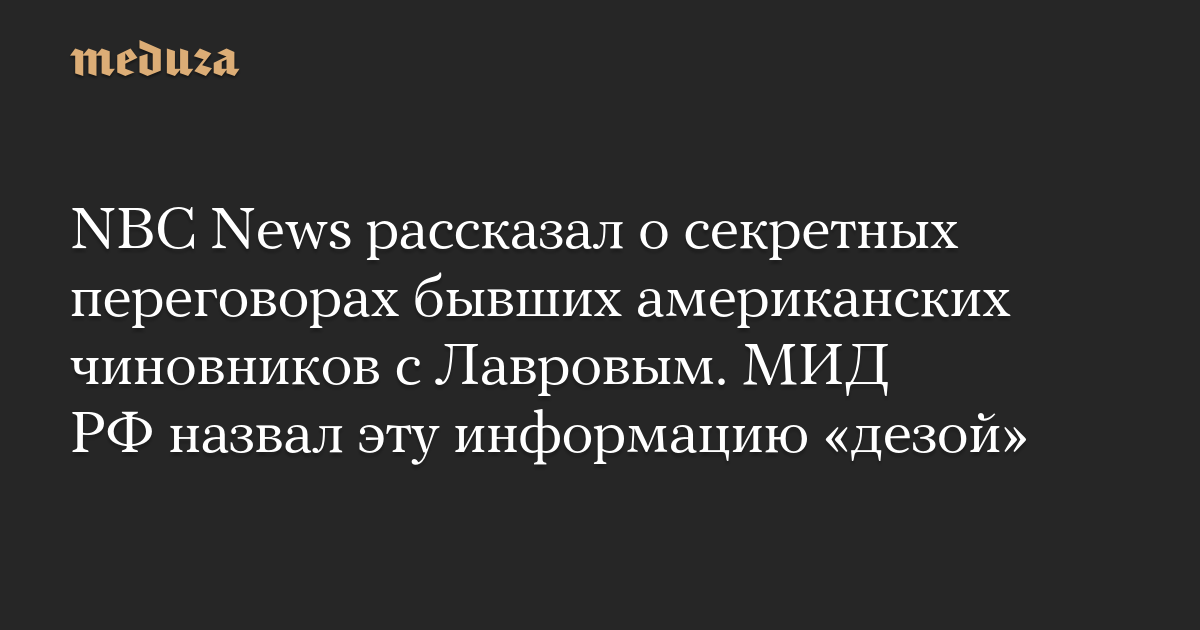NBC News рассказал о секретных переговорах бывших американских чиновников с Лавровым. МИД РФ назвал эту информацию «дезой»