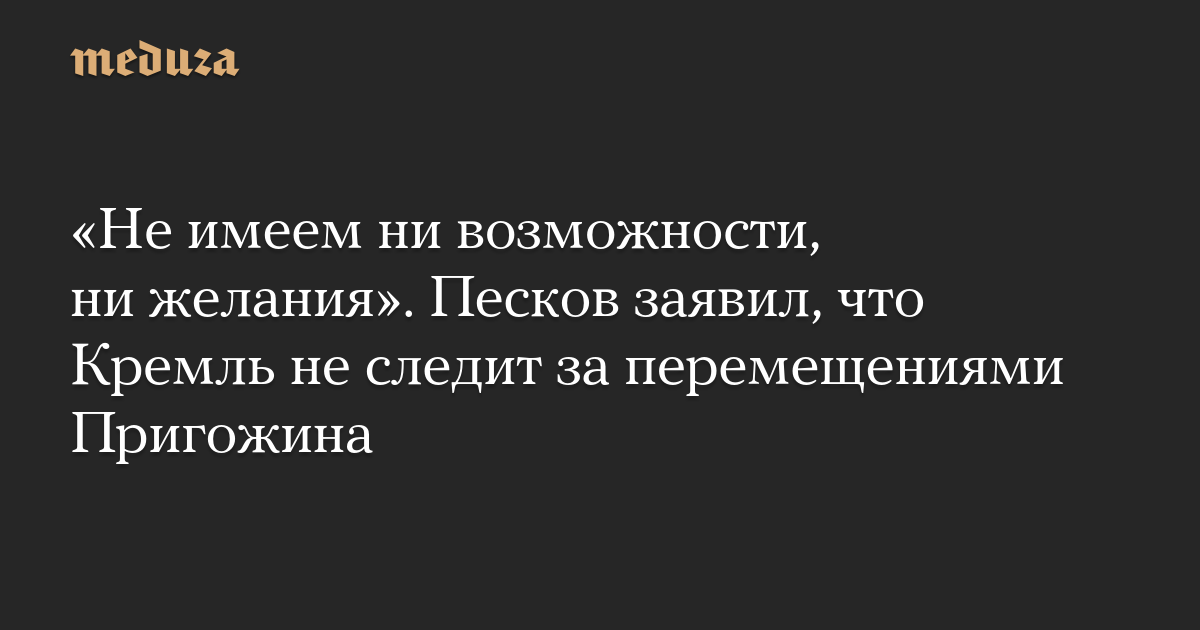 «Не имеем ни возможности, ни желания». Песков заявил, что Кремль не следит за перемещениями Пригожина