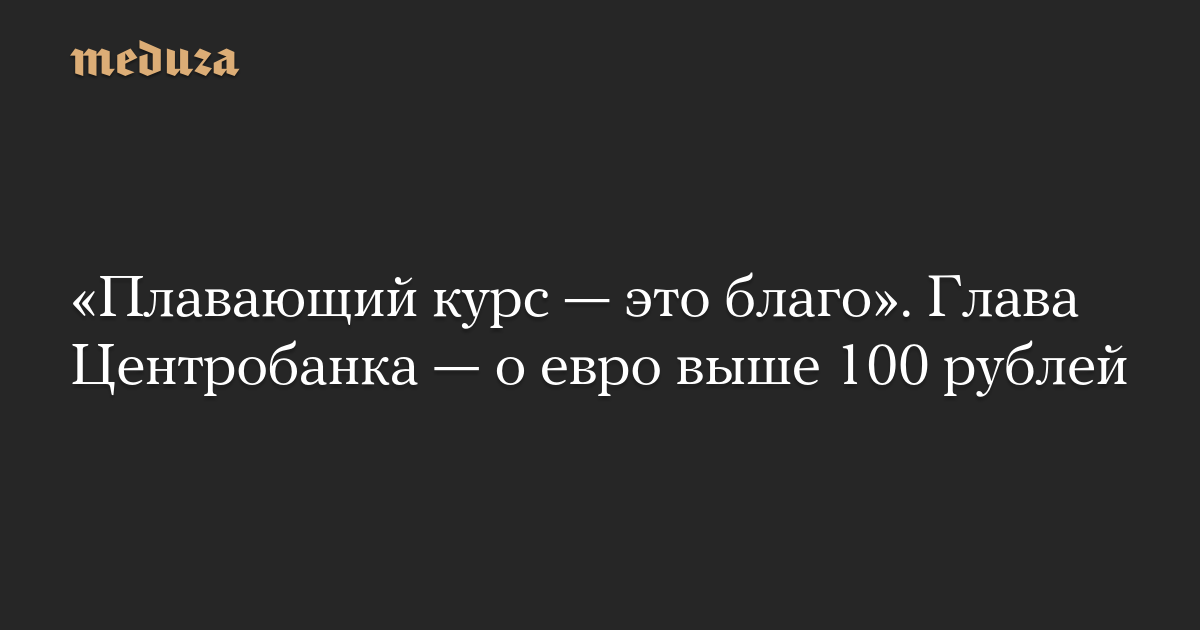 «Плавающий курс — это благо». Глава Центробанка — о евро выше 100 рублей