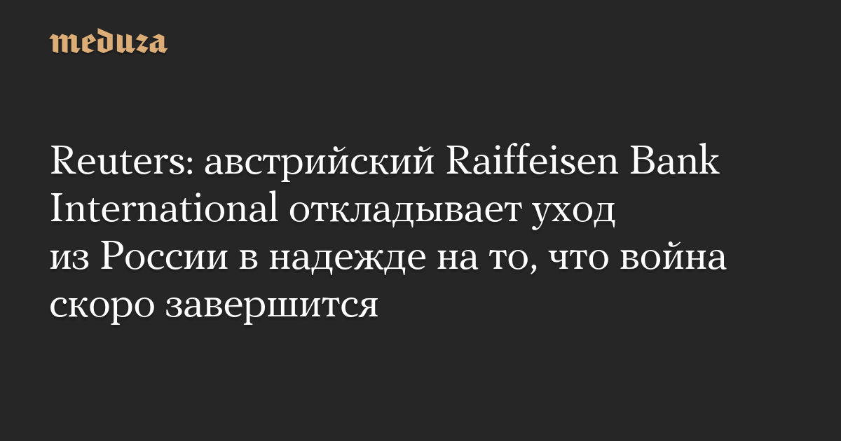 Reuters: австрийский Raiffeisen Bank International откладывает уход из России в надежде на то, что война скоро завершится