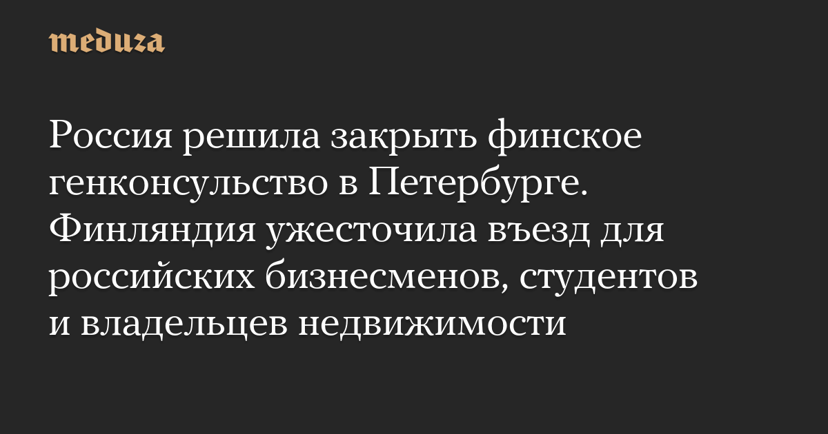 Россия решила закрыть финское генконсульство в Петербурге. Финляндия ужесточила въезд для российских бизнесменов, студентов и владельцев недвижимости