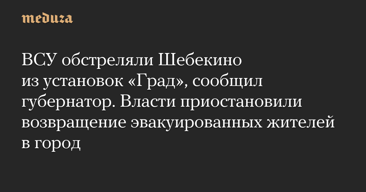 ВСУ обстреляли Шебекино из установок «Град», сообщил губернатор. Власти приостановили возвращение эвакуированных жителей в город