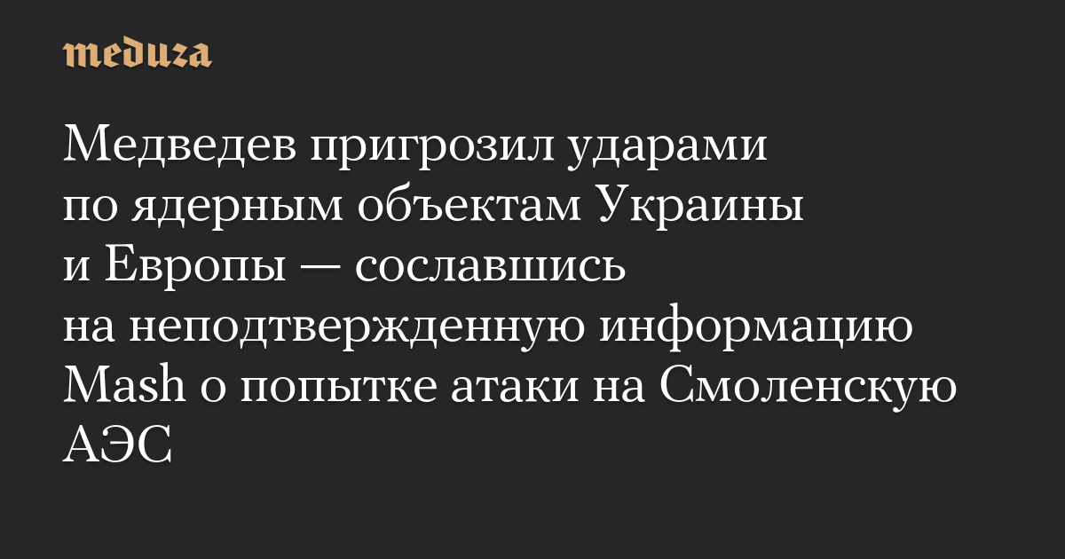 Медведев пригрозил ударами по ядерным объектам Украины и Европы — сославшись на неподтвержденную информацию Mash о попытке атаки на Смоленскую АЭС
