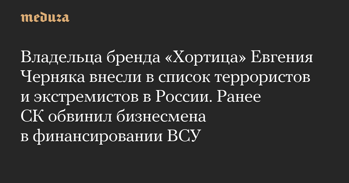 Владельца бренда «Хортица» Евгения Черняка внесли в список террористов и экстремистов в России. Ранее СК обвинил бизнесмена в финансировании ВСУ