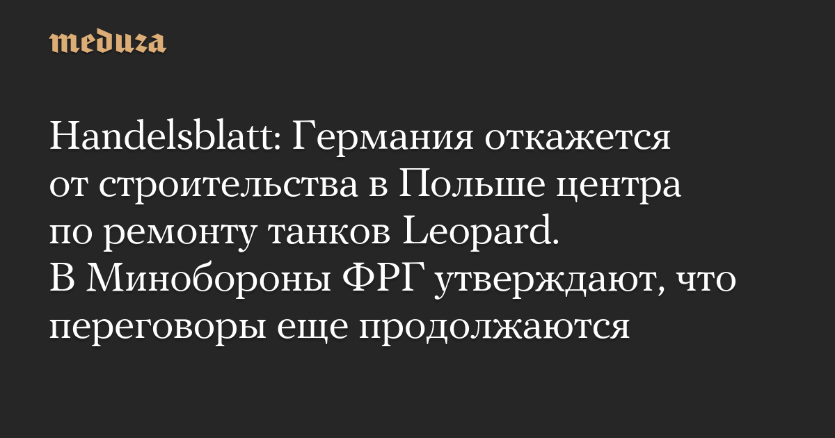 Handelsblatt: Германия откажется от строительства в Польше центра по ремонту танков Leopard. В Минобороны ФРГ утверждают, что переговоры еще продолжаются