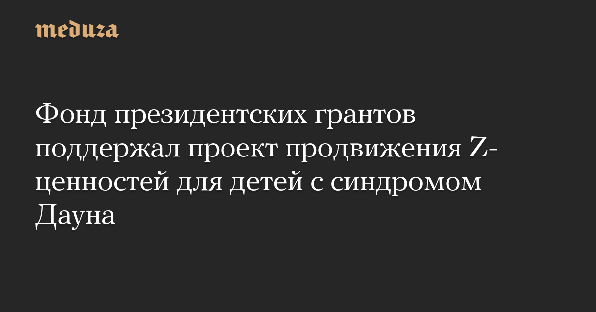 Фонд президентских грантов поддержал проект продвижения Z-ценностей для детей с синдромом Дауна