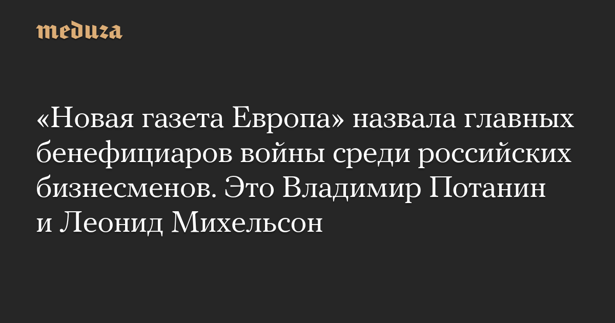 «Новая газета Европа» назвала главных бенефициаров войны среди российских бизнесменов. Это Владимир Потанин и Леонид Михельсон