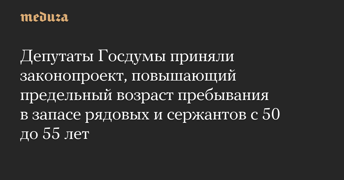 Депутаты Госдумы приняли законопроект, повышающий предельный возраст пребывания в запасе рядовых и сержантов с 50 до 55 лет