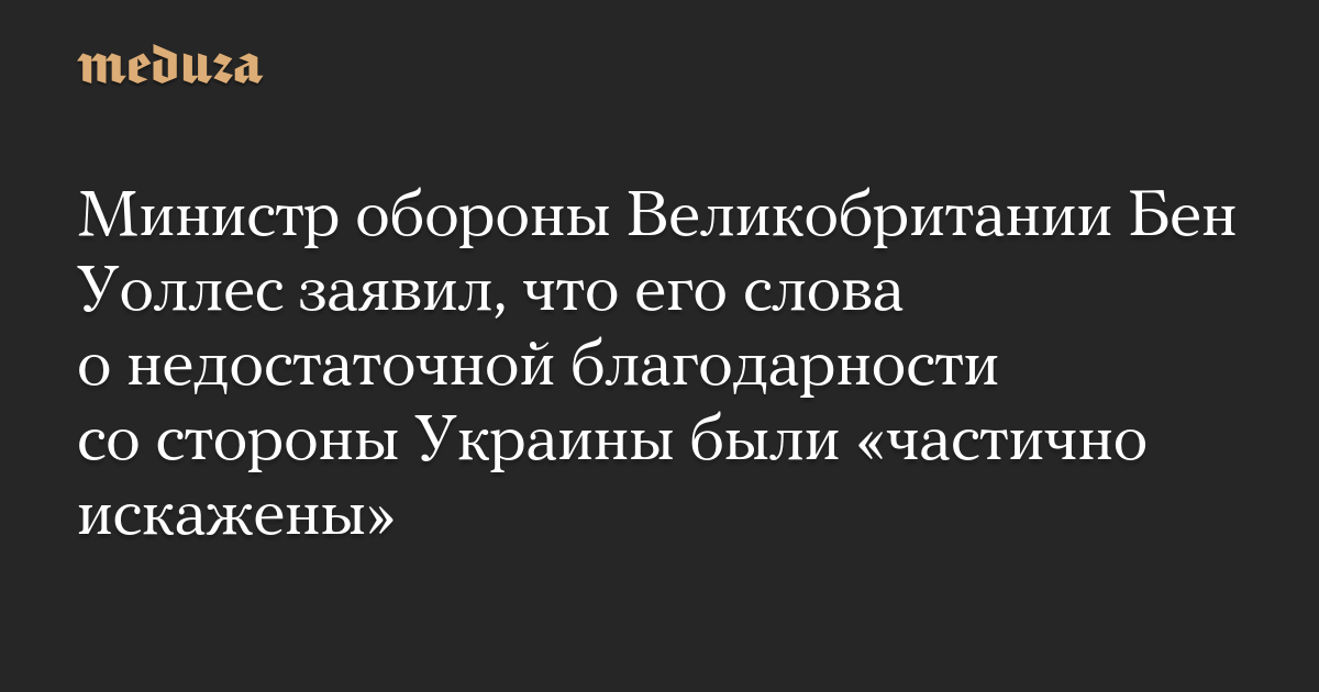 Министр обороны Великобритании Бен Уоллес заявил, что его слова о недостаточной благодарности со стороны Украины были «частично искажены»