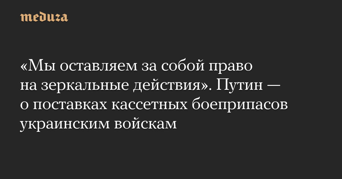 «Мы оставляем за собой право на зеркальные действия». Путин — о поставках кассетных боеприпасов украинским войскам