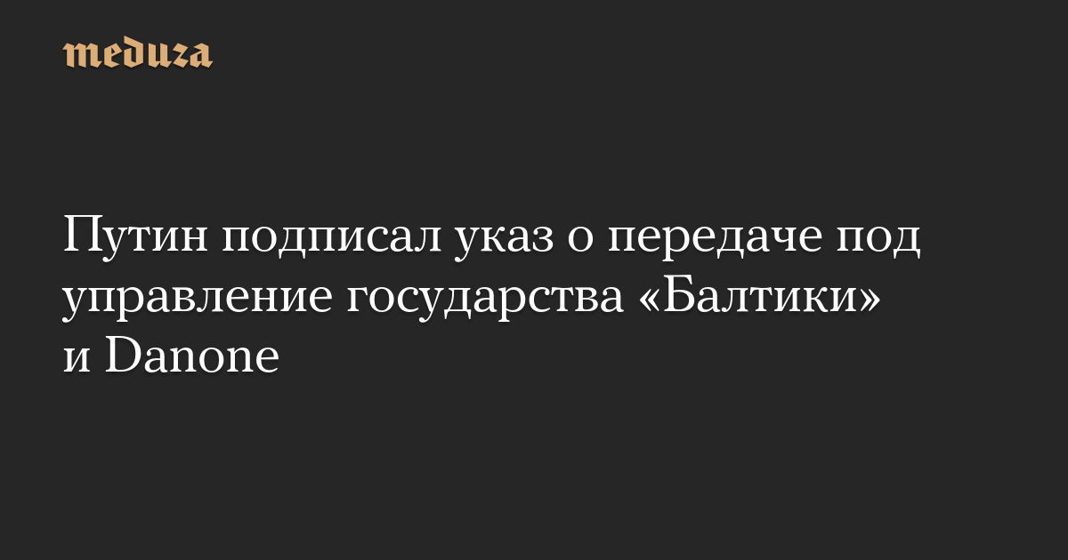 Путин подписал указ о передаче под управление государства «Балтики» и Danone