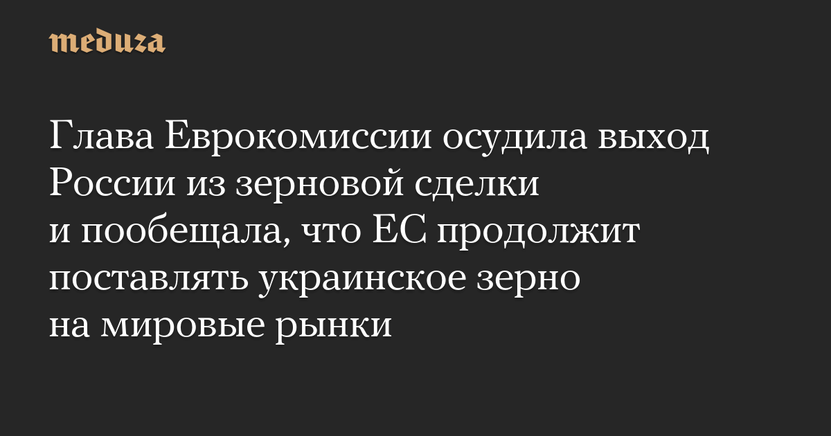 Глава Еврокомиссии осудила выход России из зерновой сделки и пообещала, что ЕС продолжит поставлять украинское зерно на мировые рынки
