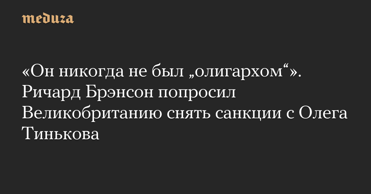 «Он никогда не был „олигархом“». Ричард Брэнсон попросил Великобританию снять санкции с Олега Тинькова
