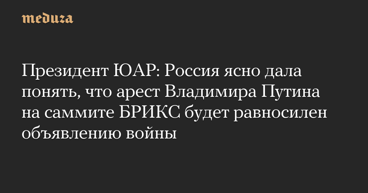Президент ЮАР: Россия ясно дала понять, что арест Владимира Путина на саммите БРИКС будет равносилен объявлению войны