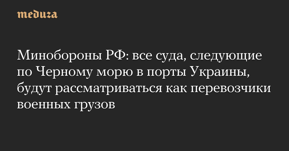 Минобороны РФ: все суда, следующие по Черному морю в порты Украины, будут рассматриваться как перевозчики военных грузов