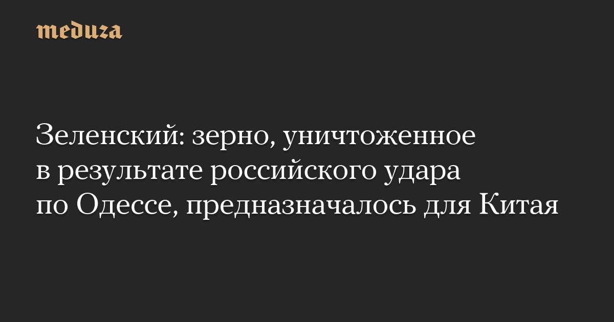 Зеленский: зерно, уничтоженное в результате российского удара по Одессе, предназначалось для Китая